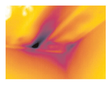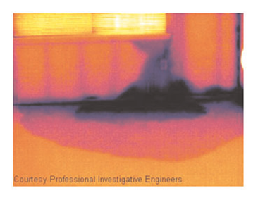 Przy użyciu kamery termowizyjnej można często wykryć w domu szkody spowodowane przez wilgoć i wodę. Wynika to częściowo z tego, że uszkodzony obszar ma inną właściwość przewodnictwa cieplnego, a częściowo z tego, że ma inną pojemność cieplną do magazynowania ciepła niż otaczający go materiał.