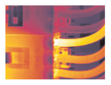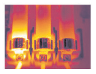 Na poniższym zdjęciu przedstawiono szereg bezpieczników, gdzie jeden bezpiecznik ma podwyższoną temperaturę na powierzchni styku z uchwytem bezpiecznika. Ponieważ uchwyt bezpiecznika jest z surowego metalu, nie widać na nim wzrostu temperatury, który jest widoczny na materiale ceramicznym bezpiecznika.